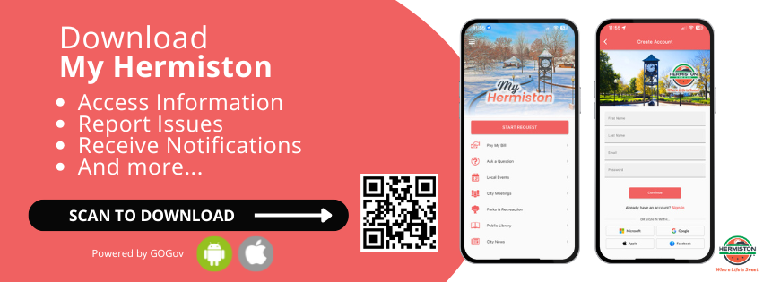 I encourage you to download the My Hermiston app today from the App Store or Google Play, create a free account, and see how easy it is to connect with your city.