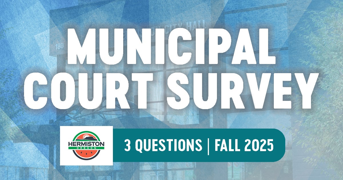 The City of Hermiston is working to determine the best way to provide services through the Hermiston Municipal Court. Please take a minute to take this three-question survey to share your opinion. |