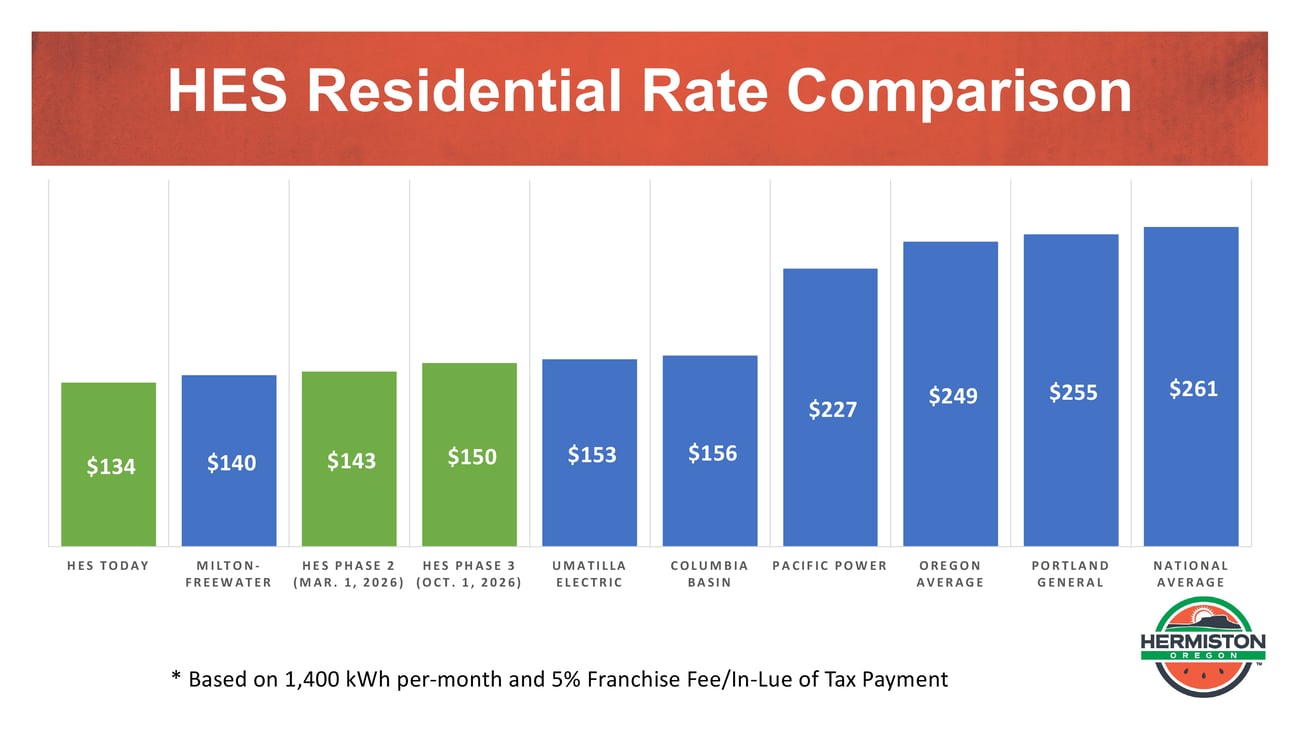 Because HES is a consumer-owned utility, it receives preferential access to BPA resources, including power from the federal hydroelectric system. As a result, Hermiston customers pay lower rates than those served by investor-owned utilities elsewhere in the state and country.