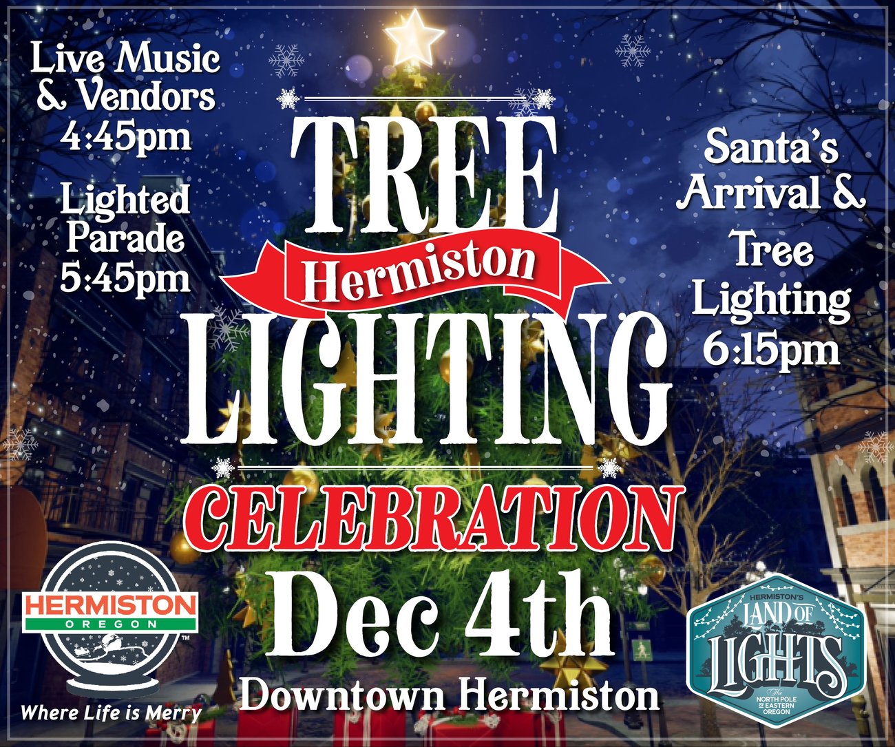 Mark your calendars for the annual Downtown Tree Lighting Celebration and Lighted Parade on Festival Street in downtown Hermiston. There are lots of ways to enjoy the evening: